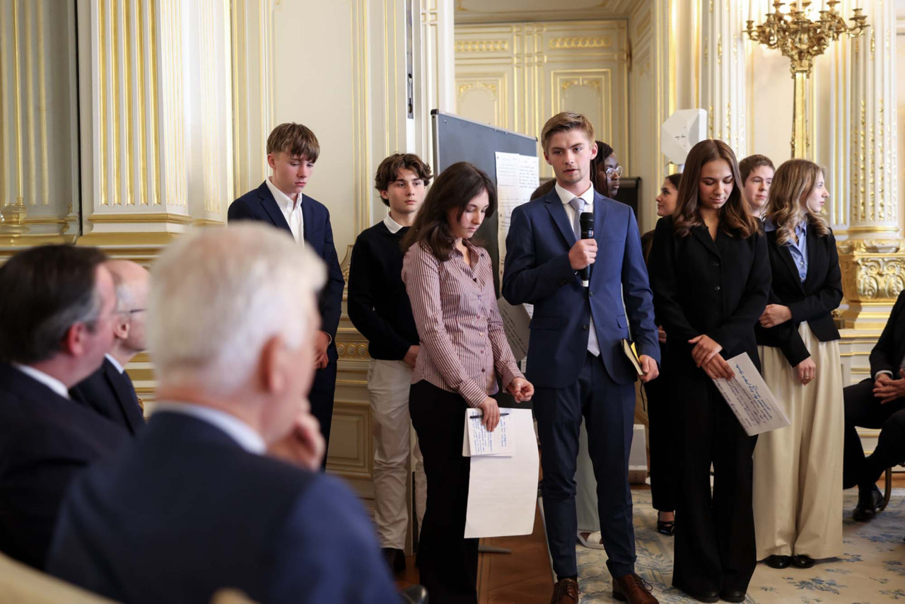 Ce samedi, plus de 60 membres du Parlement des Jeunes ont été accueillis au Palais grand-ducal pour un échange avec S.A.R. le Grand-Duc, le Président de Chambre des Députés, Claude Wiseler et le Premier ministre, Luc Frieden.