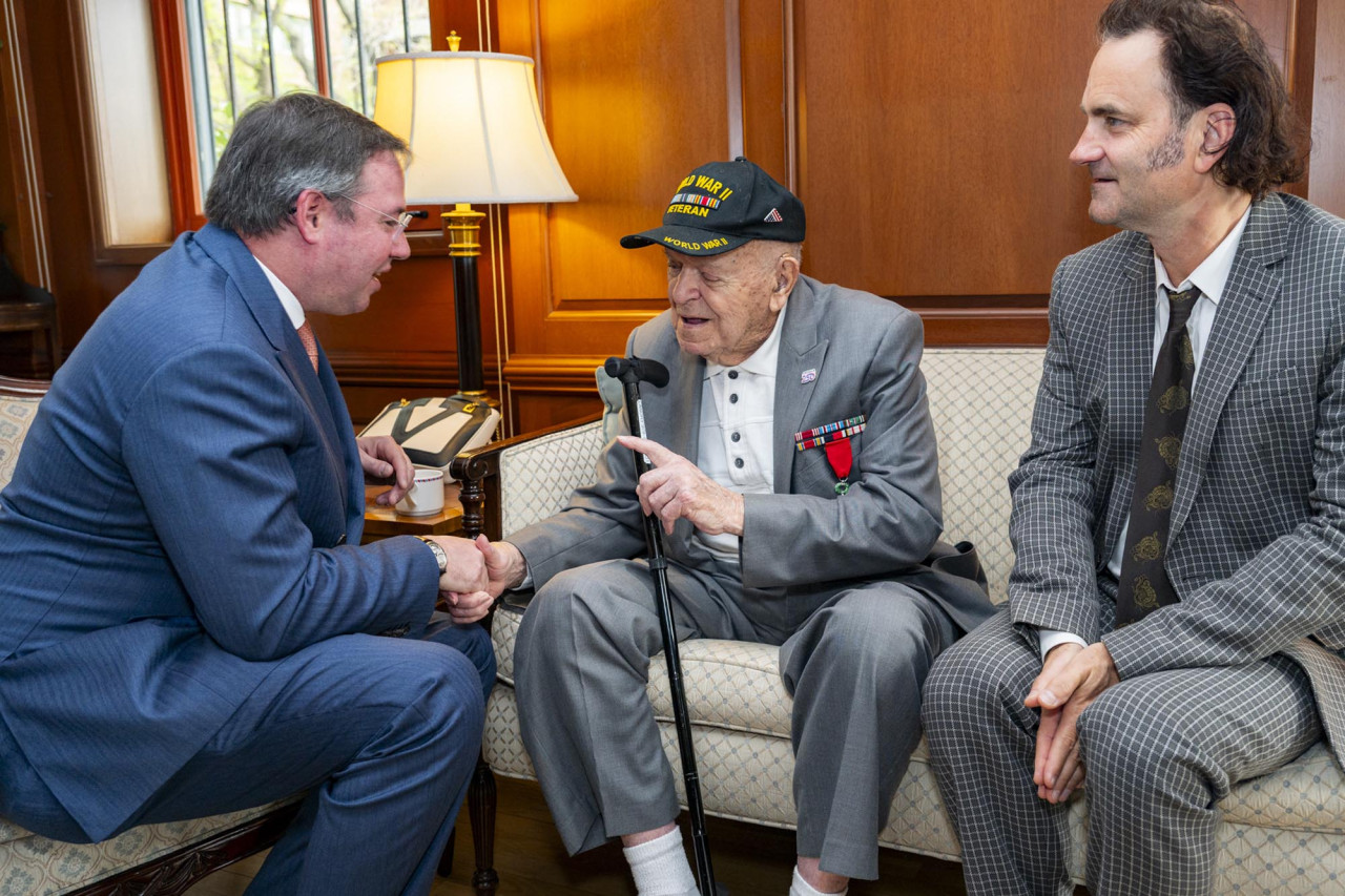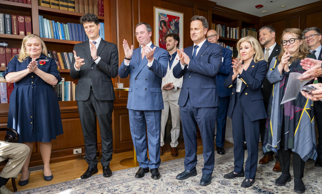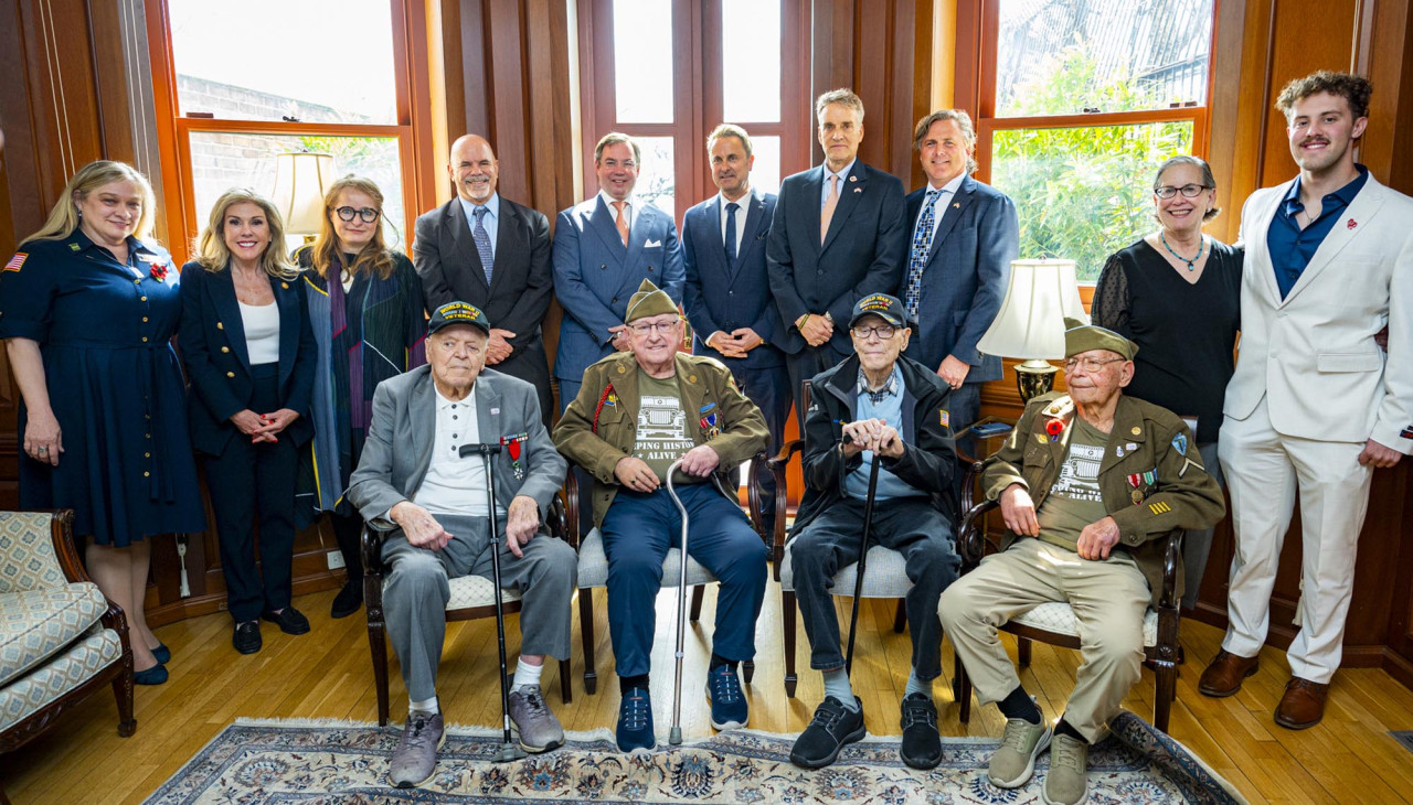 En cours de journée, le Chef de l’État et le Ministre ont rencontré plusieurs vétérans américains de la Seconde Guerre Mondiale lors d’un événement commémoratif organisé à la Luxembourg House.