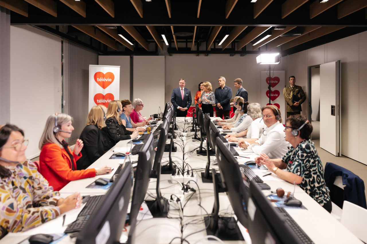 Am fréien Nomëtteg ass d’Grande-Duchesse op Rodange gaangen, an de Centre de promesses deen bei all Editioun vum Télévie dobäi war, fir déi vill engagéiert Benevollen do ze begréissen an ze ënnerstëtzen. Um Samschdegowend war de Grand-Duc live an der Spezial-Emissioun vun RTL Télé Lëtzebuerg, déi dës Jubiläumseditioun vum Télévie ofgeschloss huet. De Staatschef huet dobäi och selwer um Telefon Uriff vun Donateuren entgéint geholl.
